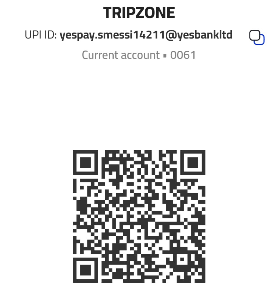 This QR code belongs to TRIPZONE and is linked to a Yes Bank current account. Users can make payments directly using the UPI ID yespay.smessi14211@yesbankltd. It's a convenient and secure way to transfer funds digitally without sharing detailed bank information.